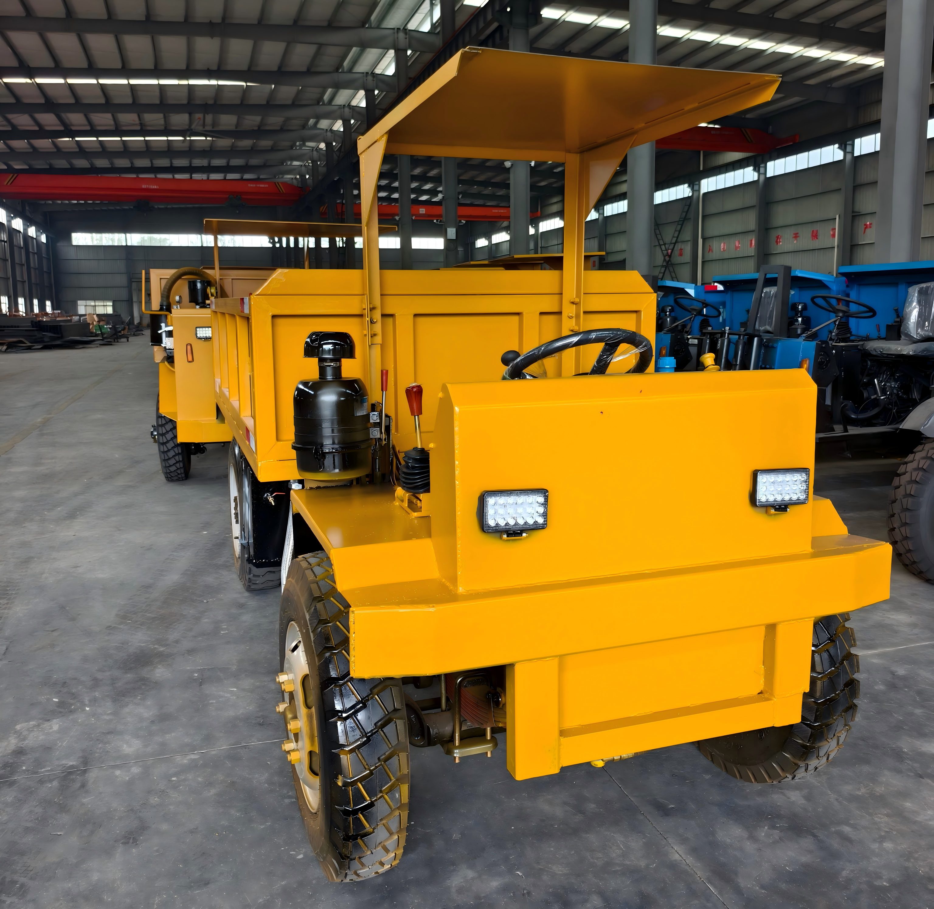 在承载能力与尺寸设计上,这款自卸车实现了 “小身材大能量” 的完美平衡。其设计载重高达 4 吨,能够满足大多数地下作业场景的物料运输需求,无论是矿石、渣土还是建筑材料,都能高效承载。同时,整车尺寸控制在3750mm×1450mm×1400mm,货箱尺寸为2500mm×1450mm×500mm,紧凑的尺寸让它在狭窄的地下巷道中拥有出色的灵活性,能够轻松穿梭于复杂的作业环境,即使是在空间受限的转弯、会车场景中,也能灵活应对,有效避免了因设备体积过大而影响作业效率的问题。