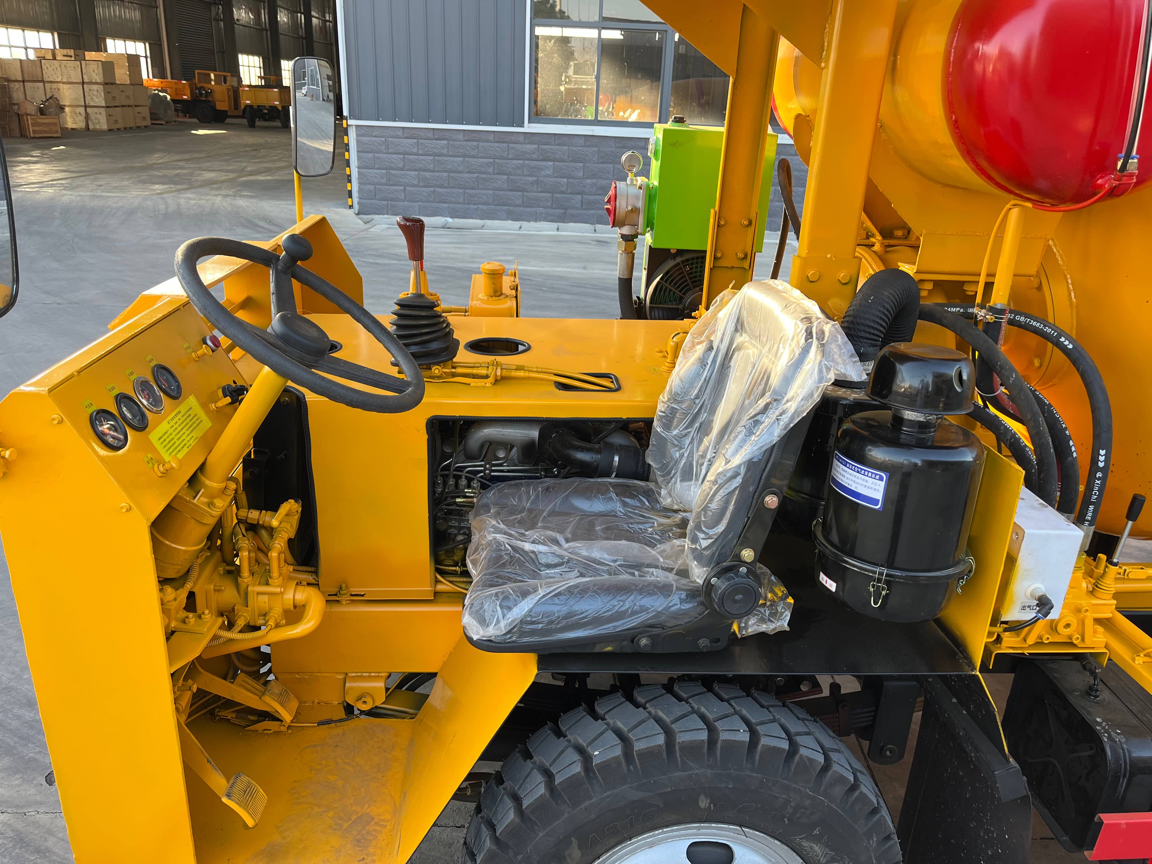 这款搅拌车的 “低矮基因” 与性能优势高度契合矿山工况:整车尺寸仅 5700*1850*2400mm,可轻松通行于多数矿山 2.2m 以上净空的低矮巷道;动力端搭载云内 490QB 发动机(45kW/66 马力),匹配 EQ145 变速箱与 6.167 大速比,后轮驱动布局搭配 12 度最大爬坡能力,既能承载 2.5 立方混凝土的重载需求,也能平稳应对矿山崎岖地形的运输挑战。