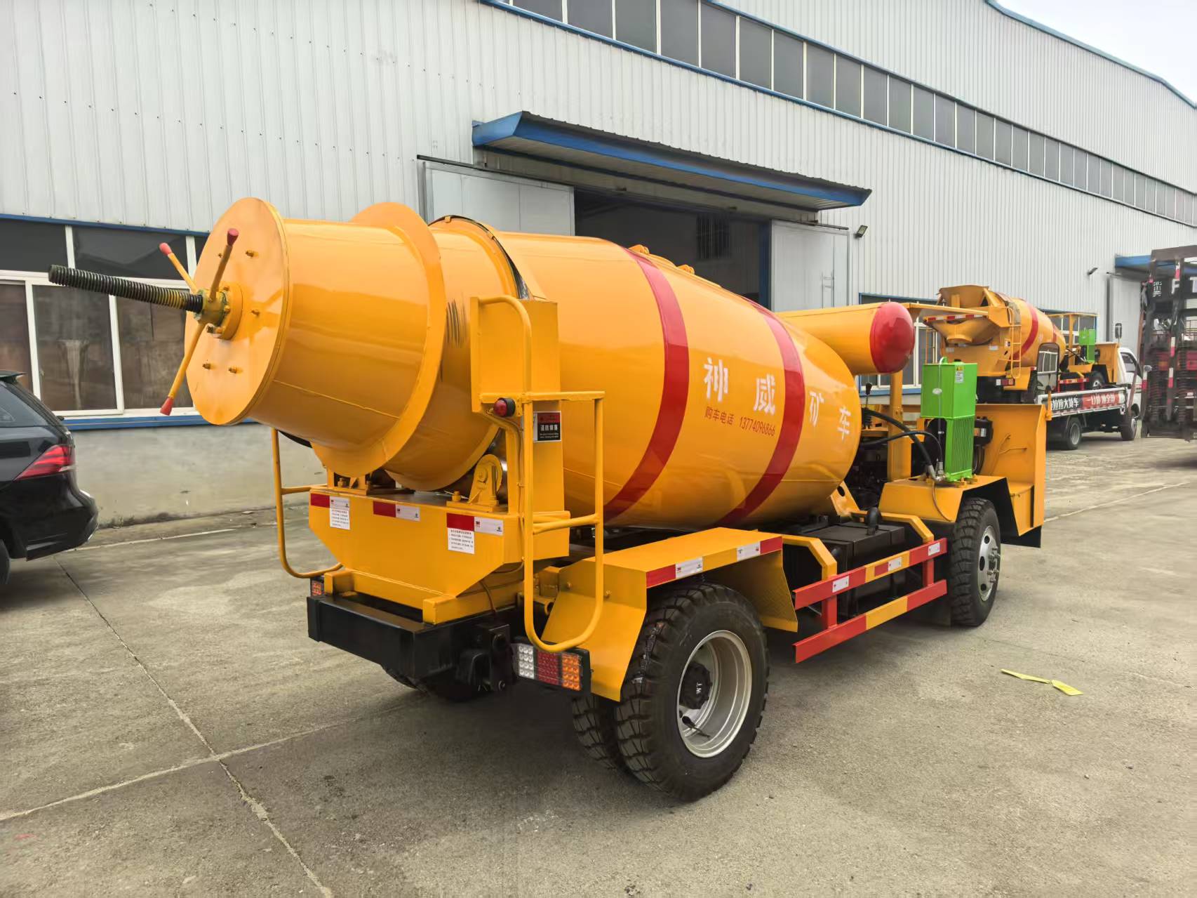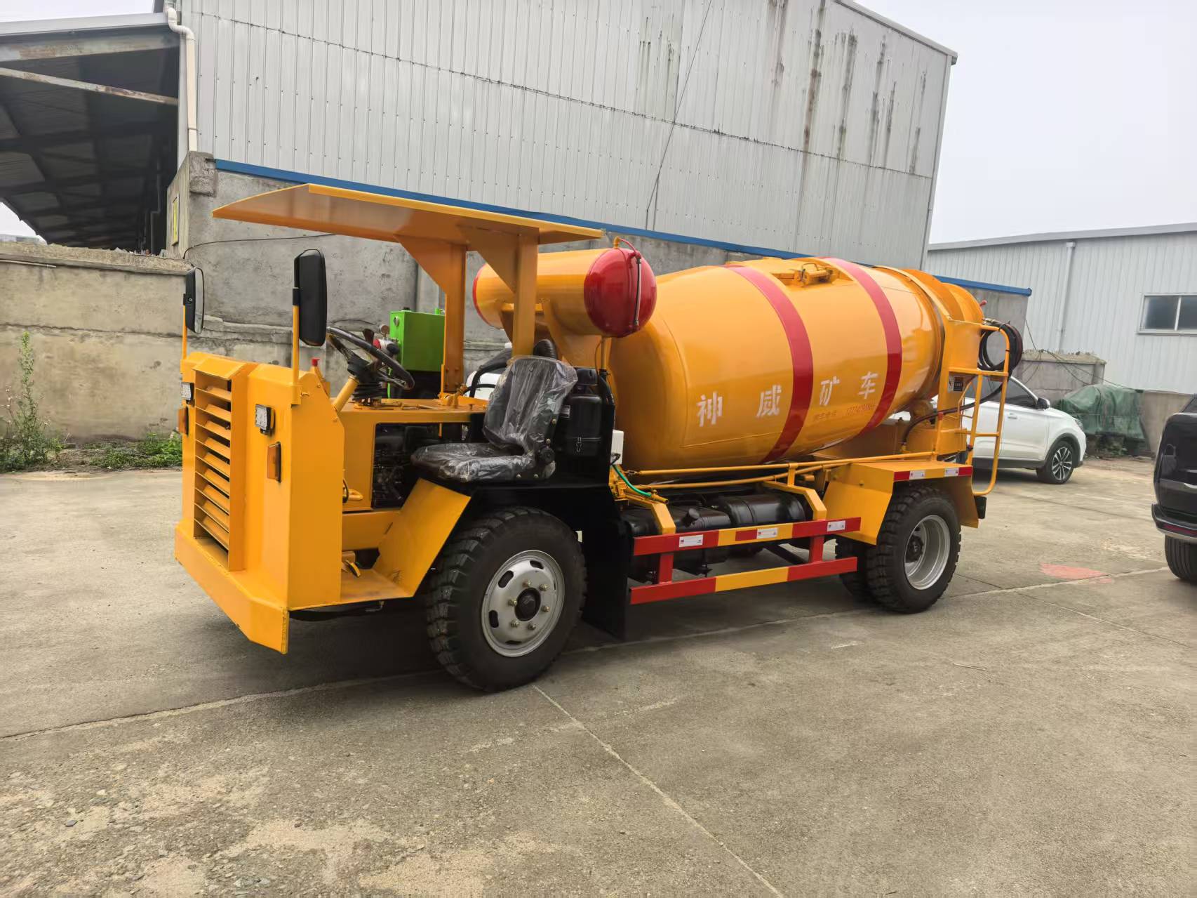 在罐体装载量方面,神威矿山机械的新型搅拌车实现了质的飞跃。在长宽高尺寸不变的情况下,将原有 2 方搅拌车的实际装载量成功提升至 3 立方。这一改进不仅基于的罐体设计,更得益于公司对空间利用和物料流动特性的深入研究。通过优化罐体内部结构,新型搅拌车在保证运输安全的前提下,大大增加了单次作业的物料运输量,有效减少了往返次数,从而提高了整体作业效率。