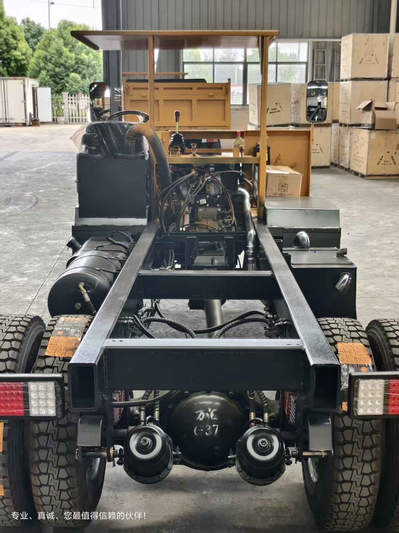 - 悬挂与轮胎:采用加强型钢板弹簧悬挂,搭配耐磨、低扁平比的矿山专用轮胎(如 12.00-20),提升对复杂路面的适应性和承载耐久性。